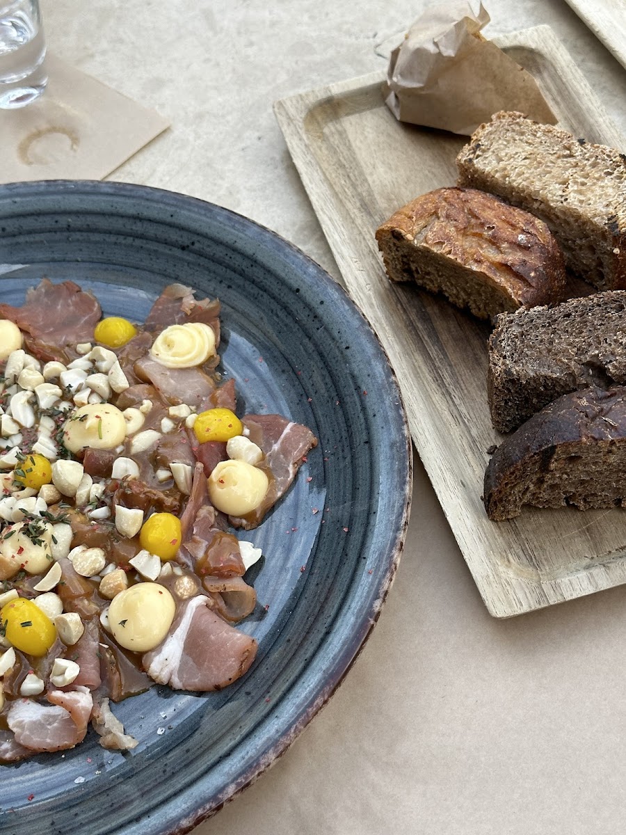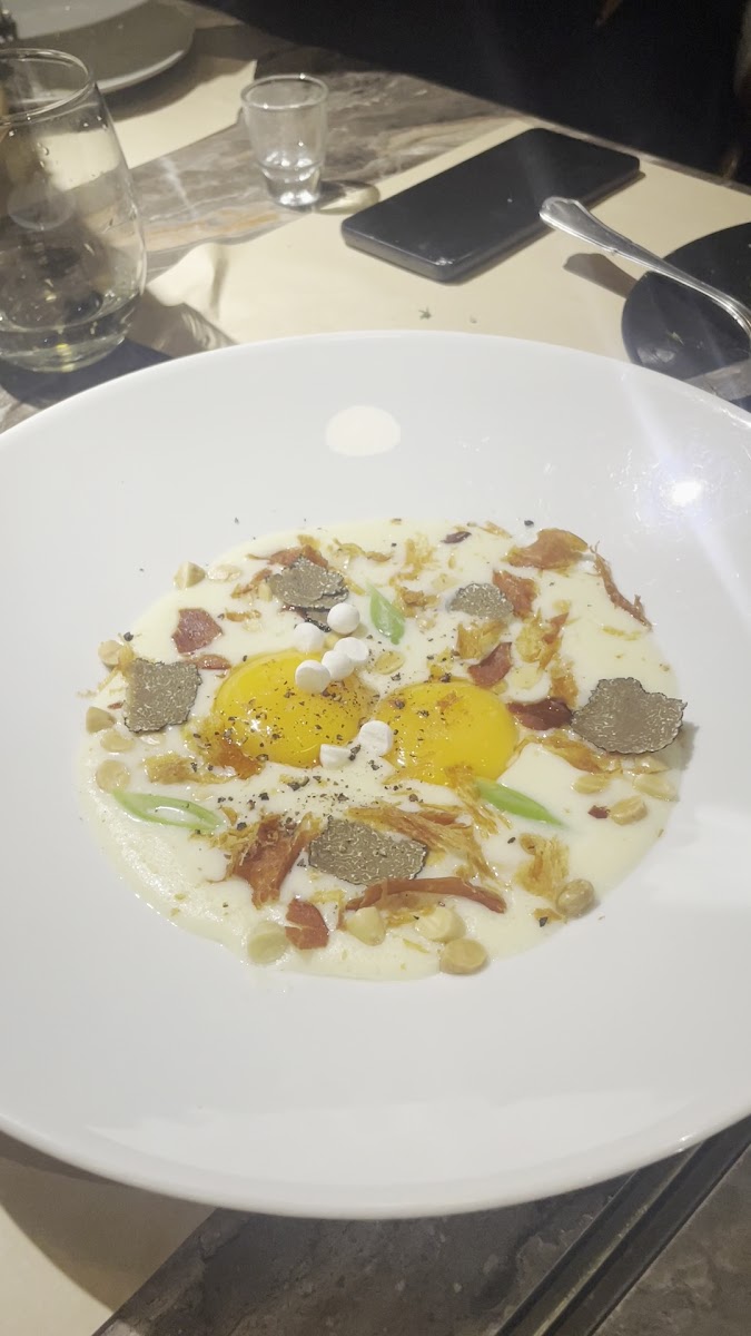 Cretan based elevated greek cuisine of amazing quality. First of all, all servers were smiling, kind and very helpful with knowledge and opinion of the food. The first dishes/starters were all magnificent. The dakos shot was extremely impressive as it has all flavour concentrated in two bites. We loved the apaki carpaccio, the soft eggs and the gamopilafo that had a rich meat and buttery flavour. Even the bread was fresh and delightful! Unique flavours, that have been created with a lot of effort and love, without missing any originality of the Cretan cuisine. The ravioli felt more like a starter to us, however they had a fresh cool flavour. Portions and prices are as expected for a place like this. We had a lovely experience. There is also an option on the menu for a gastronomic tasting!