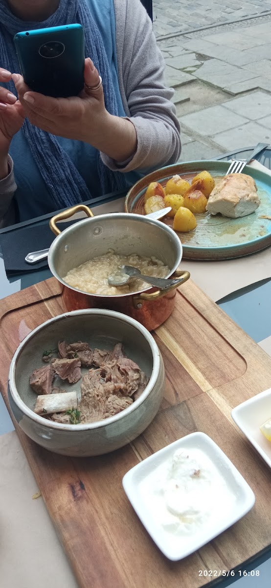 We had a terrific dinner. The stuffed grape leaves were delicate and the Hot greens salad with cheese was delicious. The wedding risotto was a real surprise - the lamb meat and rice melted in the mouth. The speciality desert - pastry filled with creme is worth the wait. Thank you for a wonderful evening!